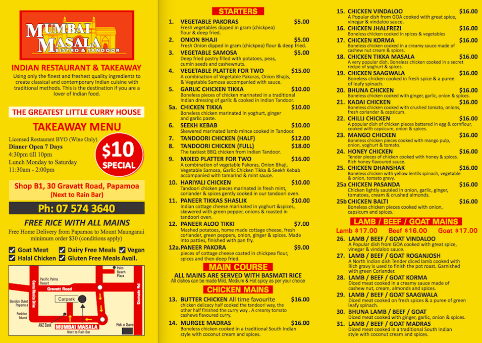 Visit India without leaving Papamoa Beach by visiting Mumbai Masala Licensed Indian Restaurant & Takeaway. With classic dishes made from the freshest ingredients, we make it easy to savour the subcontinent. Whether you prefer mild or spicy, meaty or vegetarian, there's something for everyone. Eat in or takeout for a gastronomic treat whenever and wherever the mood strikes you.